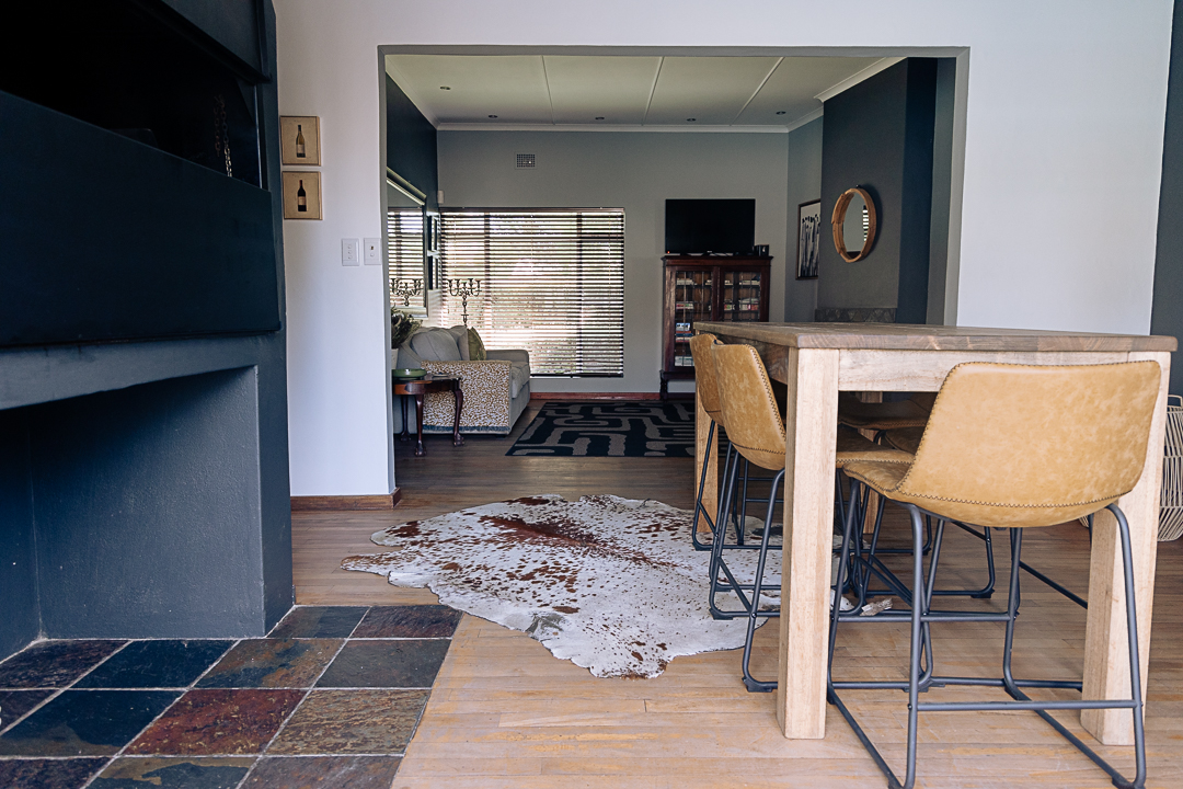 This welcoming living room connects directly to the indoor braai area, making it the perfect space to relax while staying close to the action. Whether you’re keeping an eye on the game, enjoying the warmth of the fire, or sharing stories with friends, this is a space where connection comes naturally.
