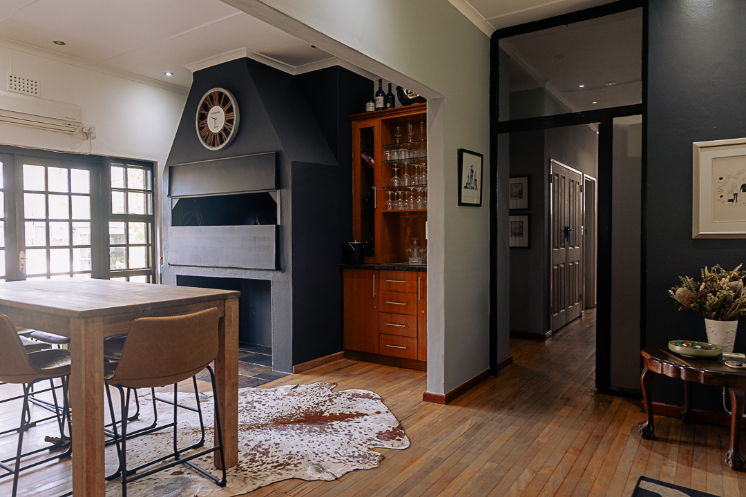 The indoor braai area is where stories are shared and meals are made with love. Featuring a dining table, this space is perfect for relaxing braais or festive dinners with family and friends.