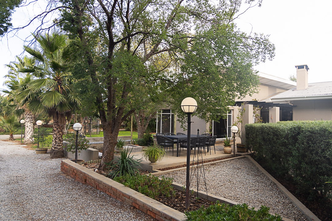Step outside onto the patio, where time slows down and the Karoo sun warms every surface. Overlooking the crystal-clear pool, this outdoor space is perfect for lazy afternoons, morning coffee, or sharing snacks after a swim.